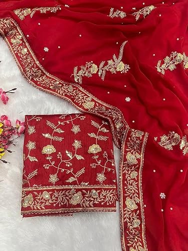 Fashionkiya Women's Embroidery Sequence Work Semi-Stitched Bridal Lehenga Choli with Dupatta For Women(New-Bridal-Latest-Wedding-Lehenga-Free size)