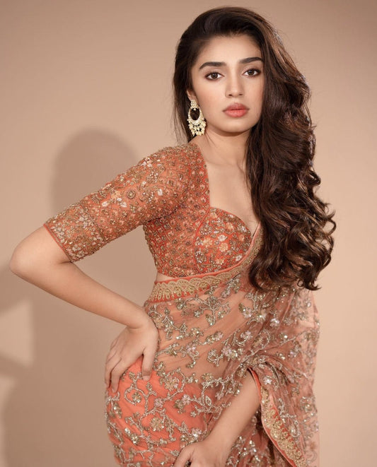 Beautiful pure organza saree with cutdana and sequence work all over.
