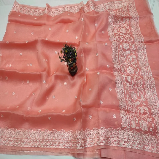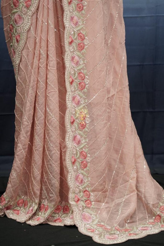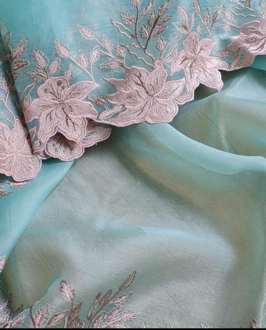 Embroidary work over pure organza silk | Party wear saree| wedding wear saree